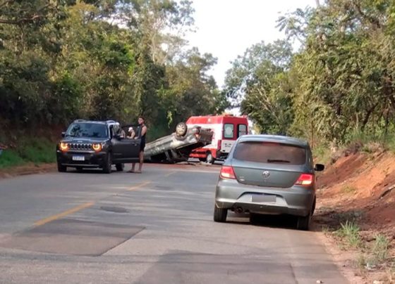 motorista sem CNH capota carro ao tentar ultrapassar na MG-238 em Sete Lagoas