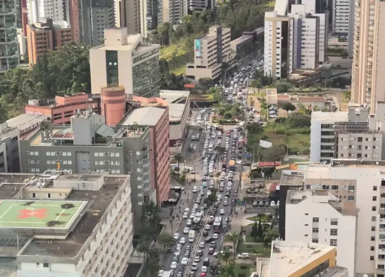 Motoristas enfrentam grande lentidão no trânsito nas proximidades do BH Shopping, na região centro-sul da capital, desde o início da…