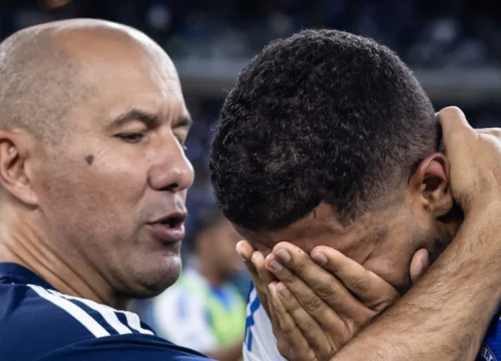Jogador do Cruzeiro chora após triunfo sobre o Vitória no Mineirão