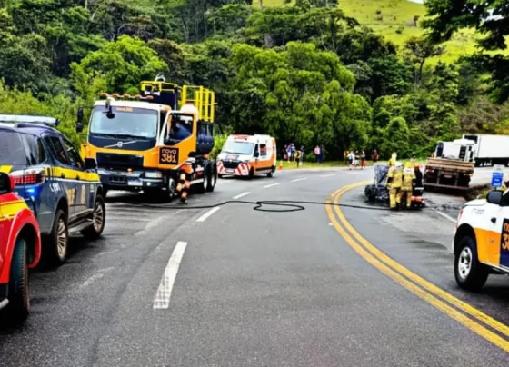 Colisão entre carro e carreta deixa vítimas carbonizadas na BR-381, em João Monlevade