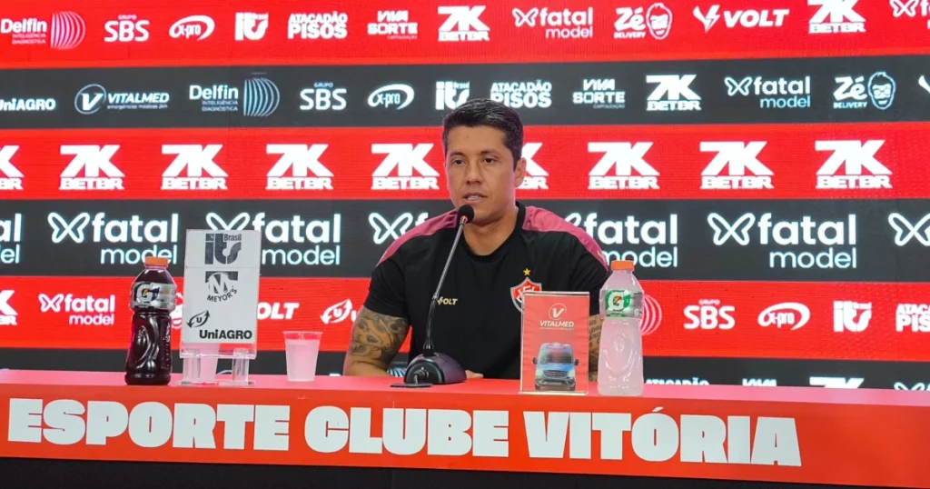Mesmo em desvantagem numérica por mais de uma hora, o Vitória conseguiu a virada com dois gols do estreante Renato Kayzer. Carpini elogiou a resposta do grupo e destacou a importância do elenco em um momento de adversidade.