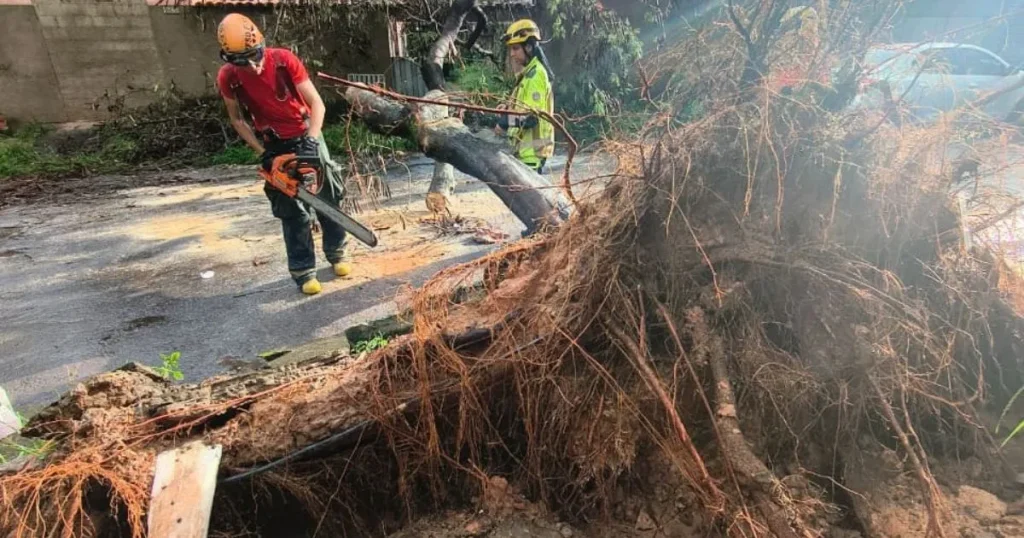 Árvore cai e atinge carro durante chuva forte em BH