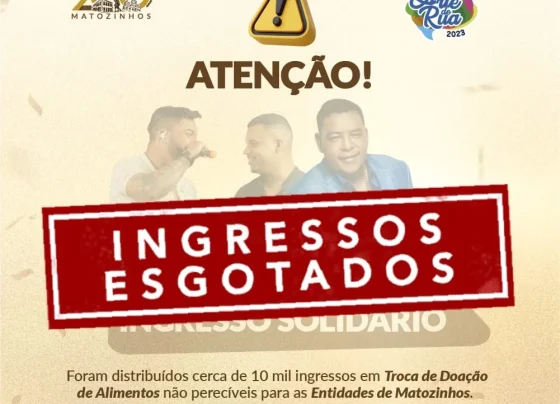 A Prefeitura de Matozinhos informa que esgotaram os 10 mil ingressos disponibilizados para troca de alimento para os shows de…