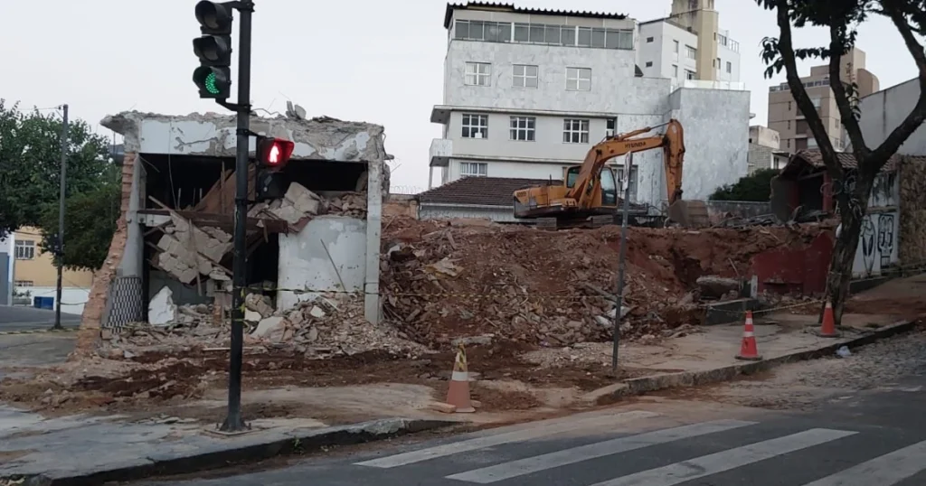 A etapa de demolição do imóvel onde funcionou, por mais de 70 anos, o Bar do Salomão já está em está em estágio avançado. Neste domingo (15), apenas parte da entrada principal ainda estava de pé no endereço histórico, na Rua Ouro com a Rua Amapá, bairro Serra, Região Centro-Sul de Belo Horizonte.
