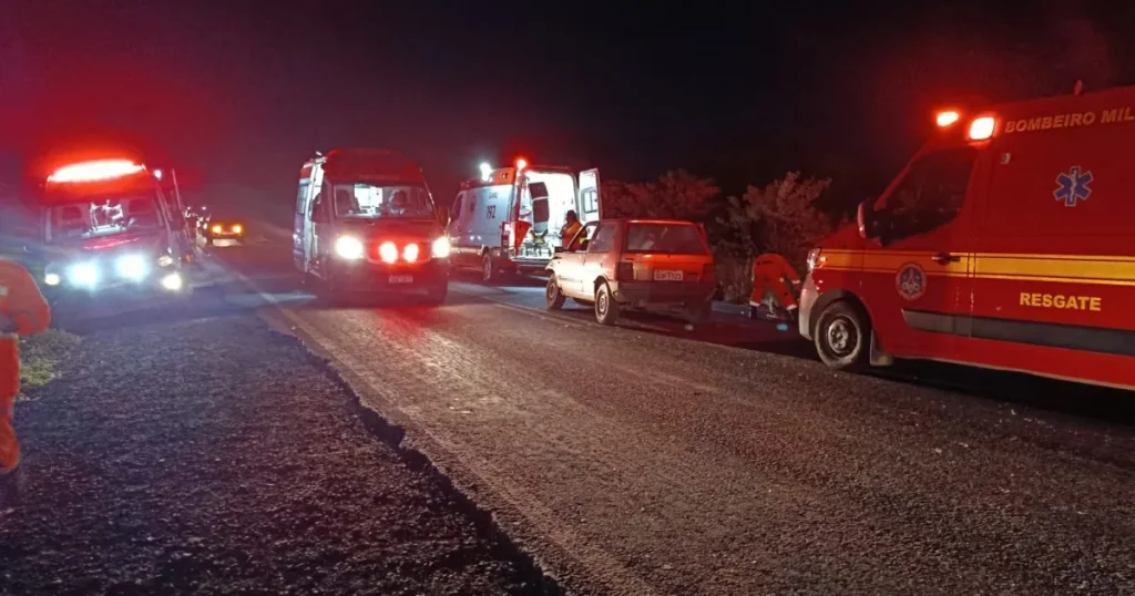 Nove pessoas ficaram feridas após um carro bater na traseira de outro na MG-401, em Jaíba, no Norte de Minas Gerais, na noite desta quinta-feira (1º).