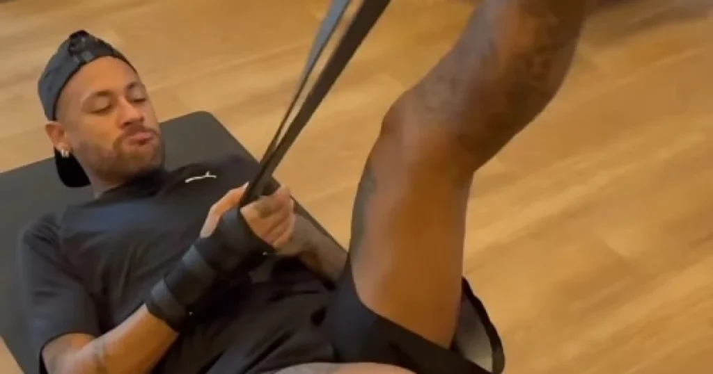 Em recuperação de lesão muscular que o tirou da Seleção Brasileira e da semifinal do Campeonato Paulista, o atacante Neymar, do Santos, publicou nesta quarta-feira (19) um vídeo de atividades físicas. O jogador aparece com ativações específicas para a região lesionada: a coxa esquerda.
