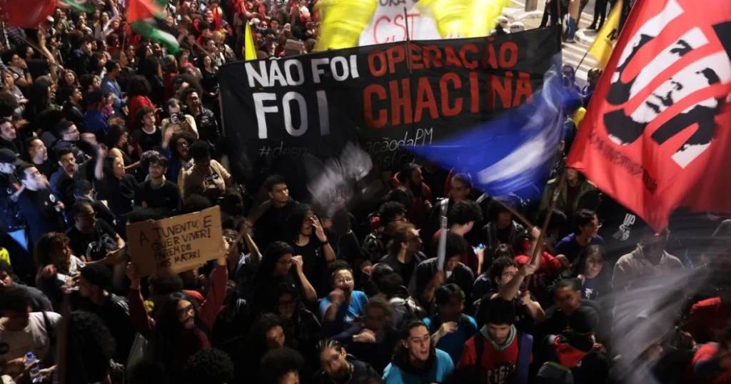 Em São Paulo, o ato reuniu movimentos negros e entidades de direitos humanos na Avenida Paulista. Os participantes pediram a federalização das investigações, a responsabilização do governador Cláudio Castro (PL) e o fim da violência policial.