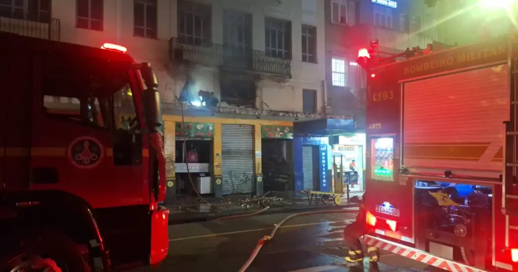 Um sacolão, localizado na rua Caetés, no centro de Belo Horizonte, pegou fogo, neste sábado (10). As chamas teriam iniciado no térreo do imóvel, e ao avistarem o fogo clientes e funcionários que estavam no andar abaixo conseguiram sair sem dificuldades. Não há feridos.