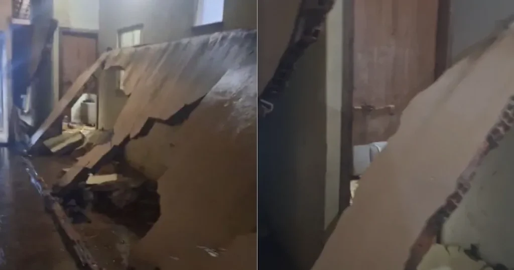 Imagens feitas no bairro Delfino Magalhães mostram o rompimento de um muro que afetou dois imóveis. O local será evacuado por medida de segurança.