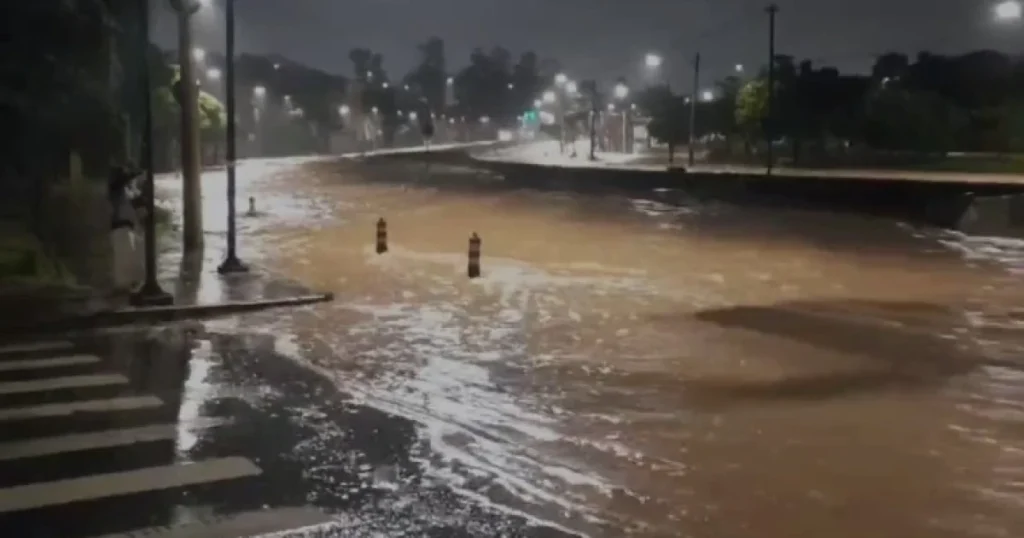 Vídeo: avenida Teresa Cristina vira rio após forte chuva nesta quinta (16)