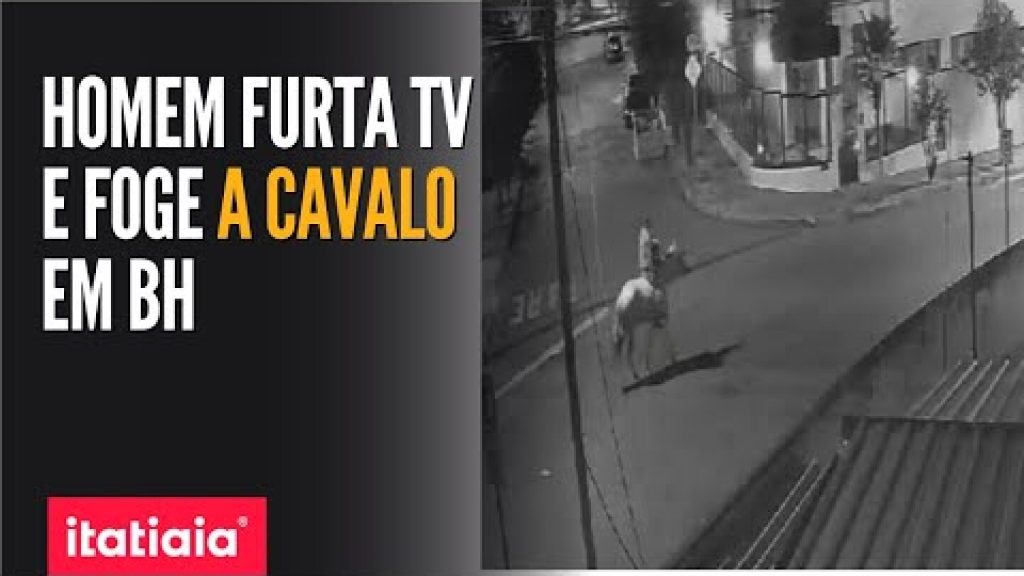 Imagens de câmera de segurança flagraram o momento em que o ladrão anda com o televisor roubado pelas ruas da cidade